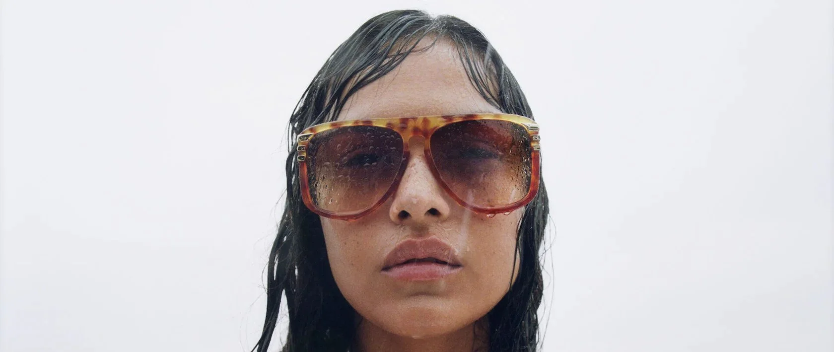 The collection reflects a mix of iconic elements such as golden metals, round, retro and oversized shapes, expressed through warm and sandy shades and gradient lenses, true to the Chloé colour palette.